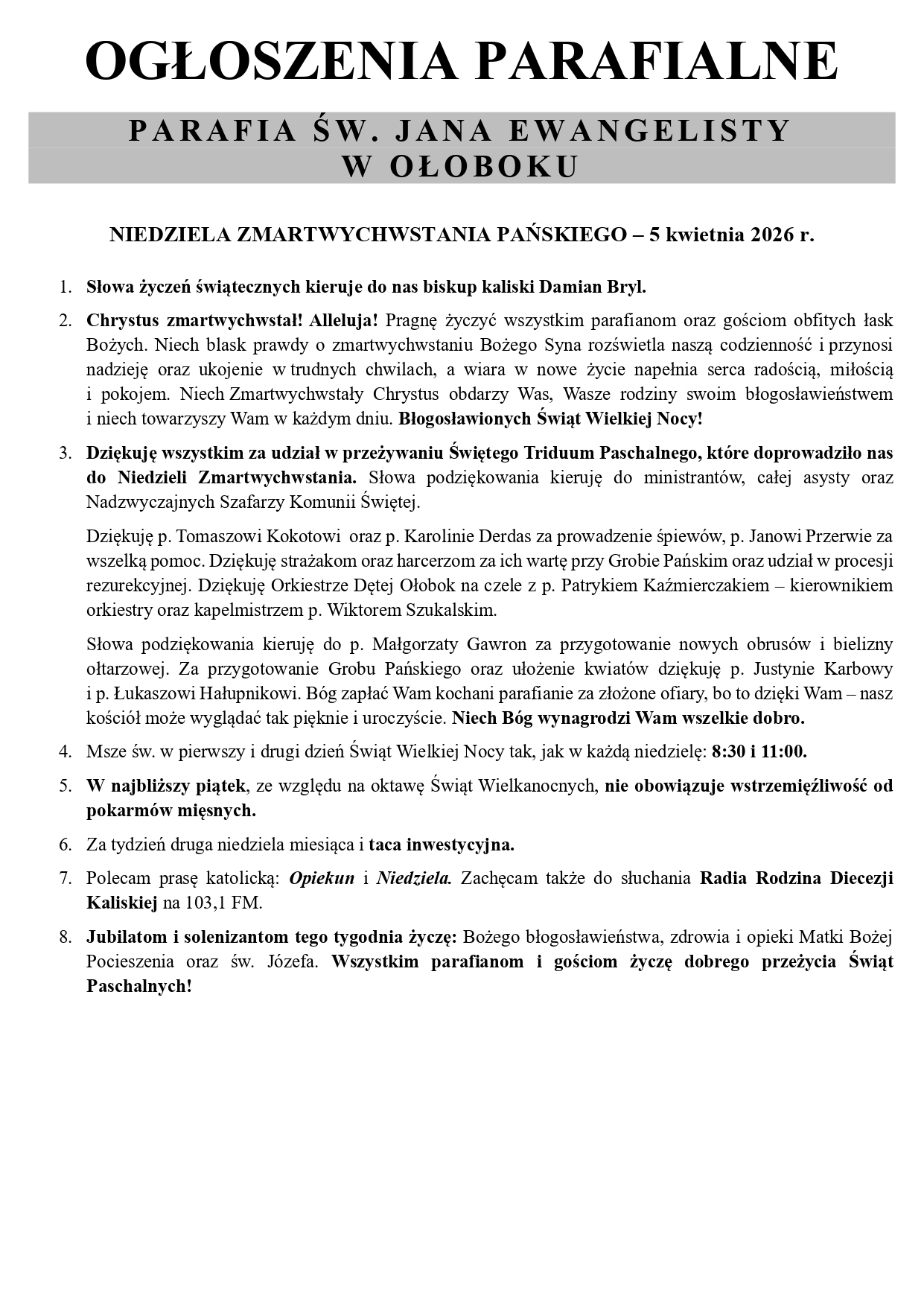 Ogłoszenia parafialne: 5 kwietnia 2026 r.